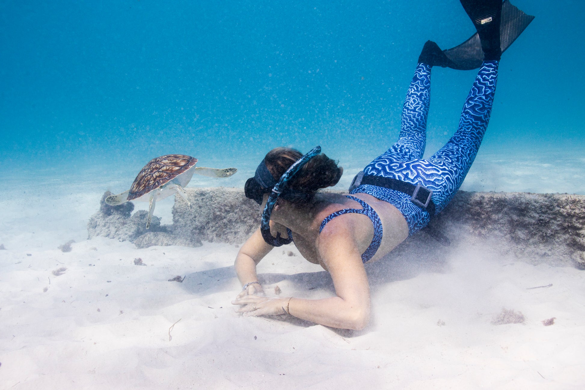 This print was created over many many hours using images of Brain coral from Barbados and composing these into a digital painting. The specific blue colours are sampled from the ocean hues around the island of Barbados. This print suits all skin tones with its combination of rich deep blue and highlights of electric Caribbean blue!