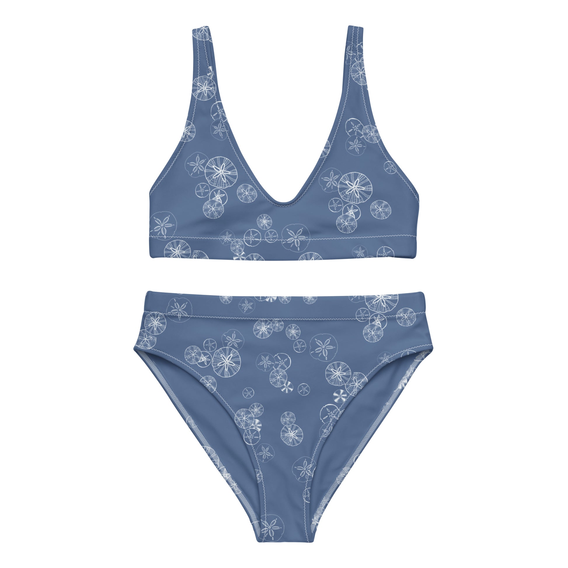 Sand dollar print, each one hand drawn for a unique and beautiful print. This time in our favorite Kashmir blue colour. It’s too easy to fall in love with this bikini set. Removable pads and its double-layer make it comfy to wear all day by the pool or at the beach. Using our recycled polyester material blend as a unique eco quality.